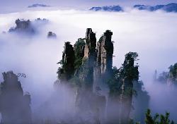 • 張家界景區(qū)云霧繚繞,宛如仙境引客